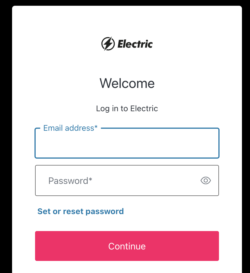 If this is your first time ever logging into Electric, click “Set or reset password” in the blue link text to set up an account when you arrive in the browser.